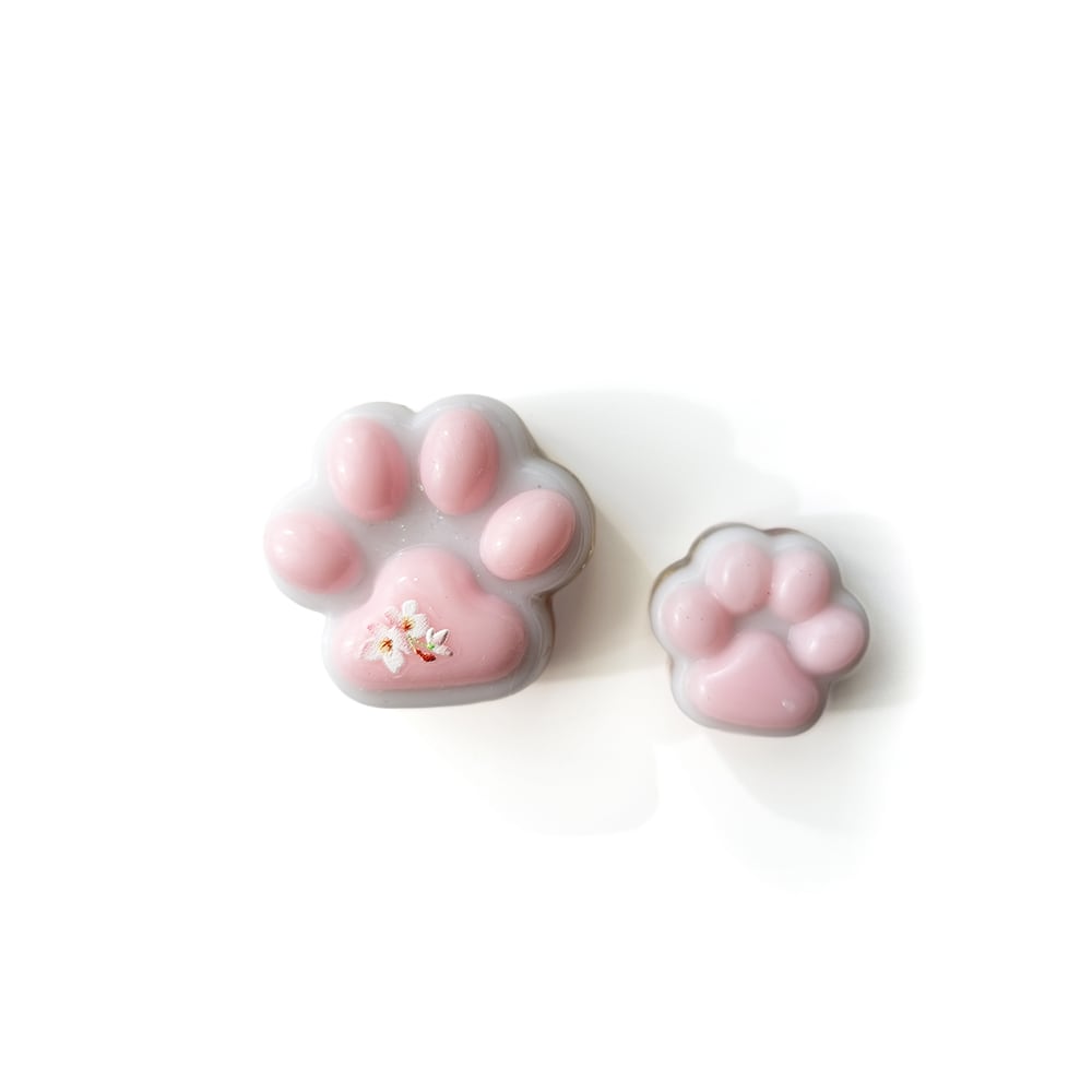 尾道の坂道にふわりと舞う桜と、そこに暮らす猫たちをモチーフにしたぷっくり肉球型のマグネットです。